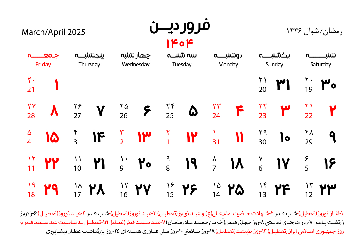 تقویم دیواری۲۰۰عدد/۲۵۰گرم-۳۰*۴۵