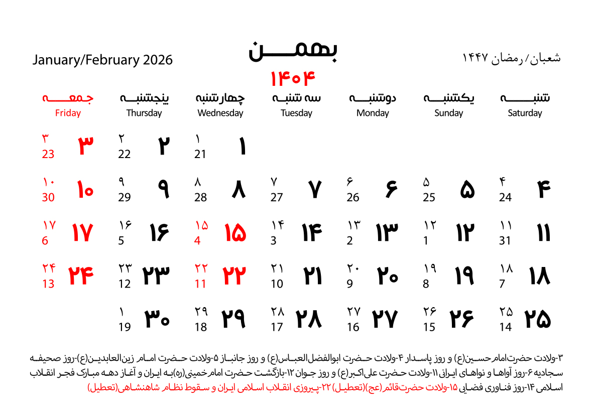 تقویم دیواری-۵۰۰عدد/۲۵۰گرم- ۳۵*۵۰